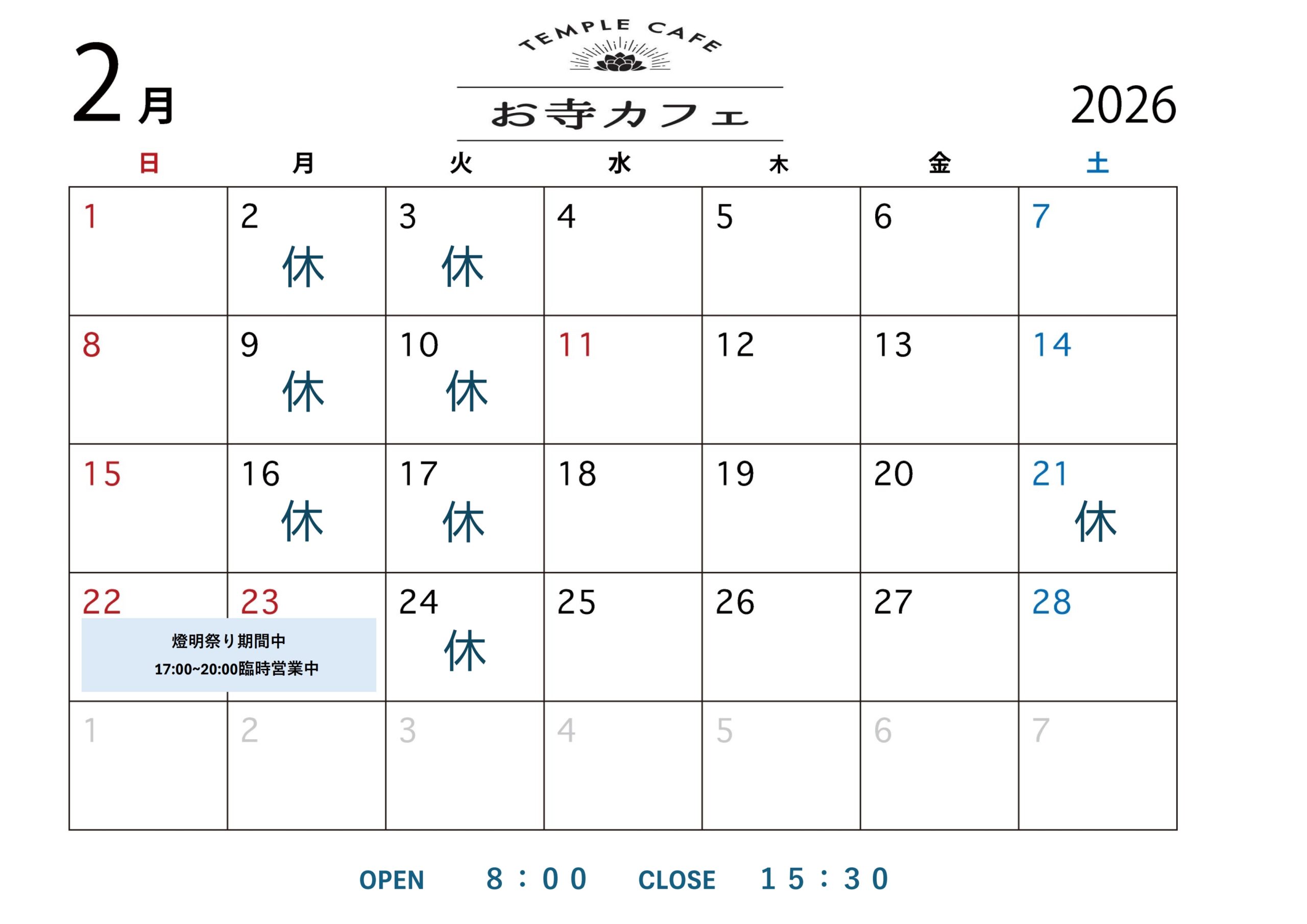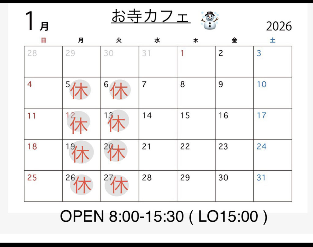 善光寺 大勧進 「お寺カフェ」営業スケジュール
